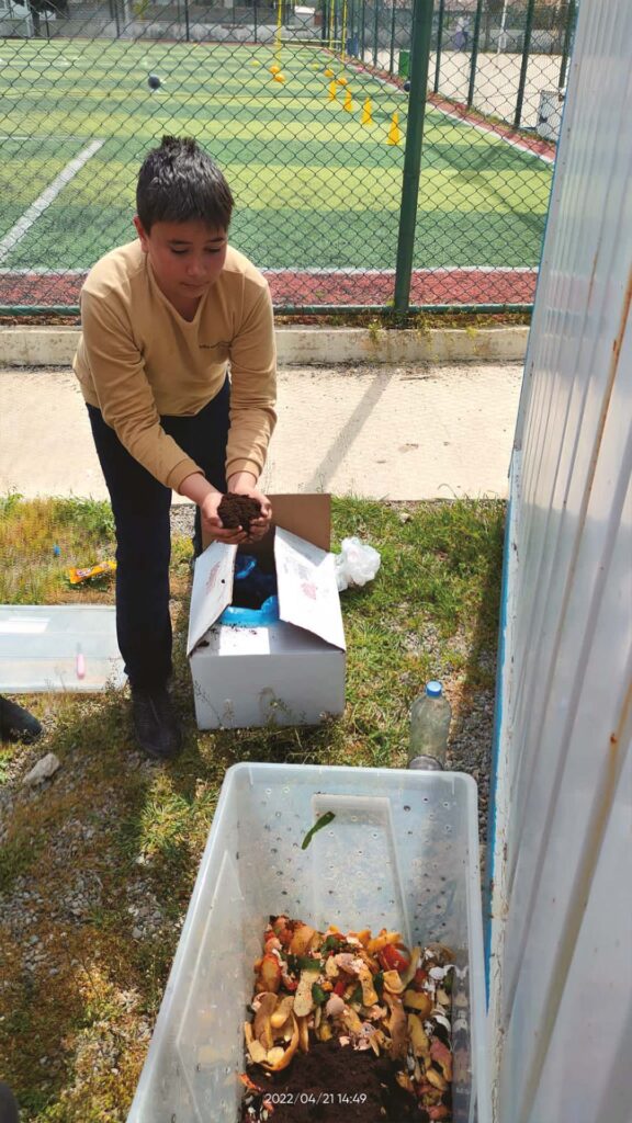 İşe 2021 Aralık ayında, sistemin ve gerekli malzemelerin öğrencilere tanıtılmasıyla başladık. Kompostun oluşumu ve sonrasında doğaya sağladığı katkılarla ilgili detaylı bilgilendirmeler yaptık. Kullanacağımız temel gıda atıklarını belirledik. Ardından görev dağılımları ve planlamalar yapıp işe koyulduk.