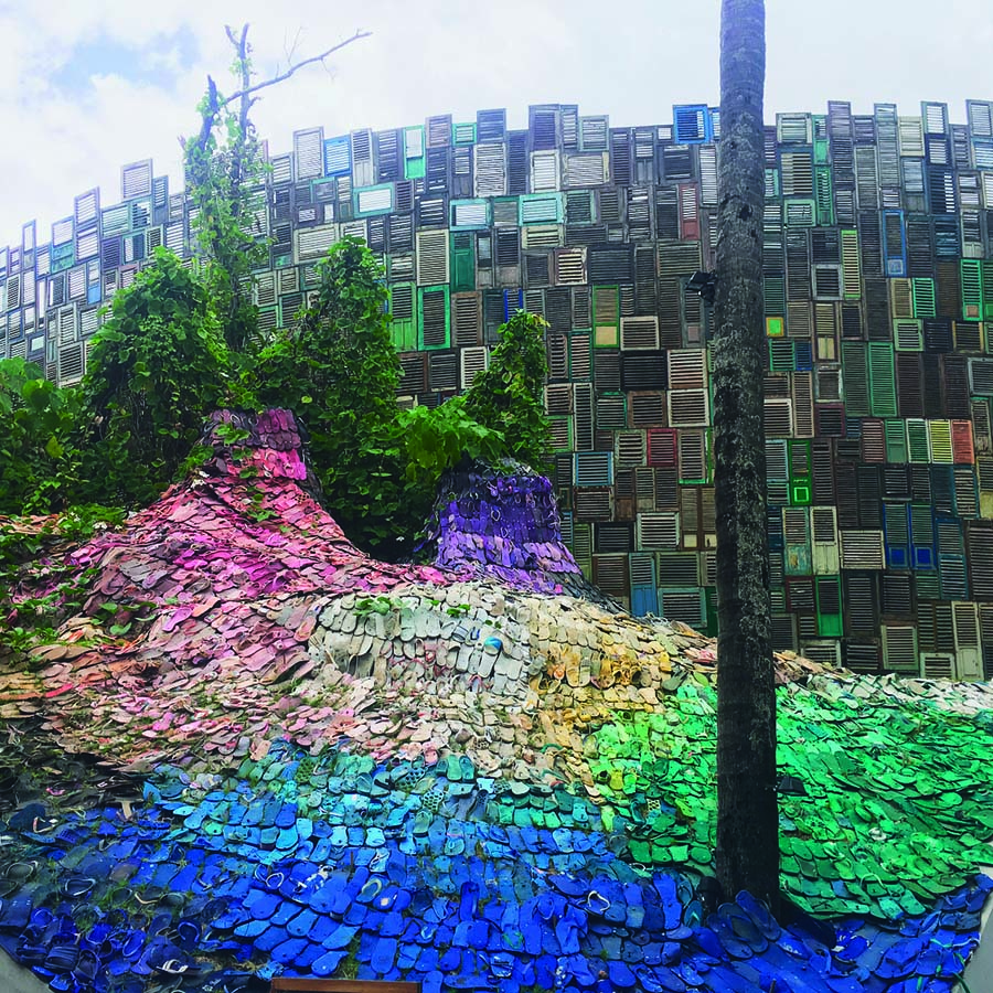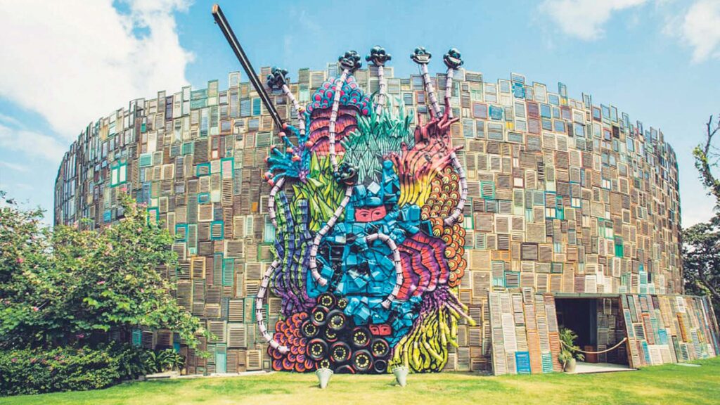 Günümüzde global arenada sürdürülebilirlik kavramını bir kez daha sorgulayan ve sorgulatan pek çok esere rastlıyoruz. Alman asıllı sanatçı Liina Klauss’un Bali’de çağdaş tasarımla öne çıkan ve sıfır atık felsefesini benimseyen Katamama Suits’deki atık flip-flop kullanılarak üretilen 5000 Lost Soles isimli eseri ise deniz kirliliğine ayna tutuyor. 2017’de Endonezyalı sanatçı Eko Nugroho tarafından evsel atıklar kullanılarak ortaya konulan Bouquet of Love eseri de Bali’deki çevre kirliliği sorununa dikkat çekiyor. Japon sanatçı Tanabe Chikuunsai imzalı OMM Müzesi’nde yüzde 90’ı geri dönüşümlü malzemeden yapılan bambu heykeli, bambu işçiliği ve çağdaş sanatın flörtünü gözler önüne seriyor.
